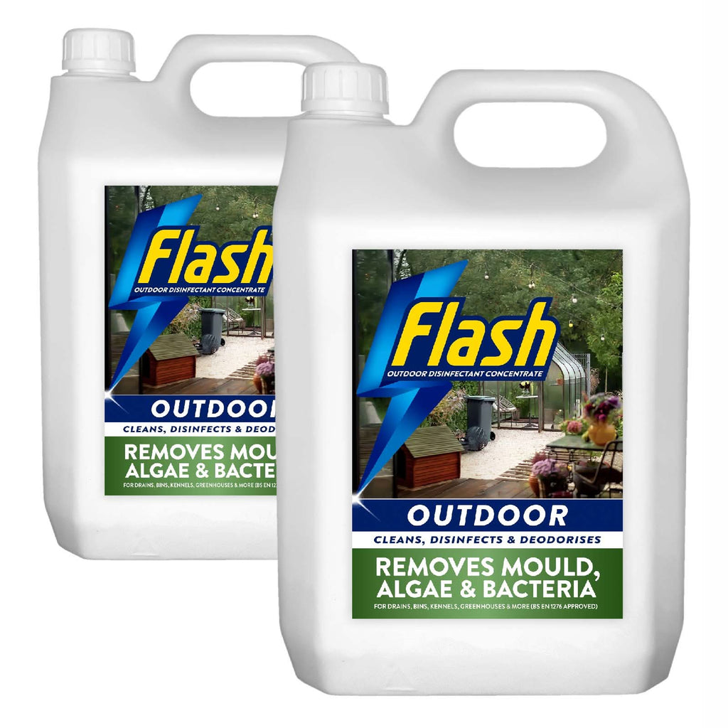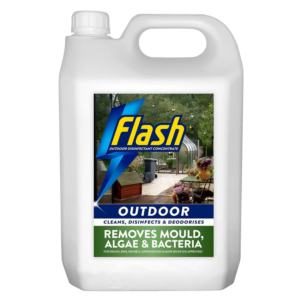 - POWERFUL DISINFECTANT: 5 litre outdoor disinfectant and cleaner effectively removes mould, dirt, and bacteria from various outdoor surfaces, BS EN 1276 approved for professional-grade cleaning performance